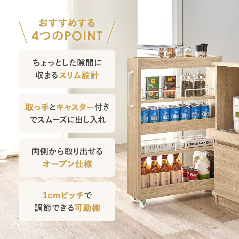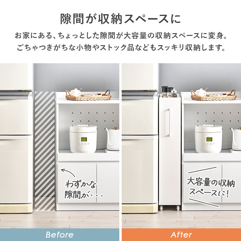 もし置くスペースがない場合は、移動が出来るワゴン式のものを使ったり、キッチン用突っ張りラックなどでキッチンスペースの壁を活かした収納スペースを作りましょう。