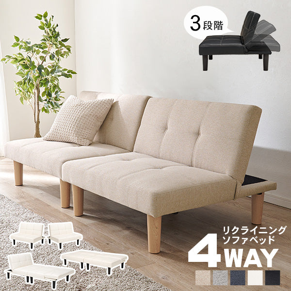 ソファとベッド、両方置く場所がないという方におすすめなのが、 こちらのリクライニングソファベッド。 仕事や勉強、食事をしたい時はソファスタイルに、 脚を伸ばしてくつろぎながら読書やテレビ鑑賞をしたい時はカウチスタイルに、 お昼寝したい時にはベッドスタイルに。 脚を外してフロアソファとしても使うことができます。 背もたれには3段階のリクライニング機能付きで、 お好みの角度に調節が可能です。