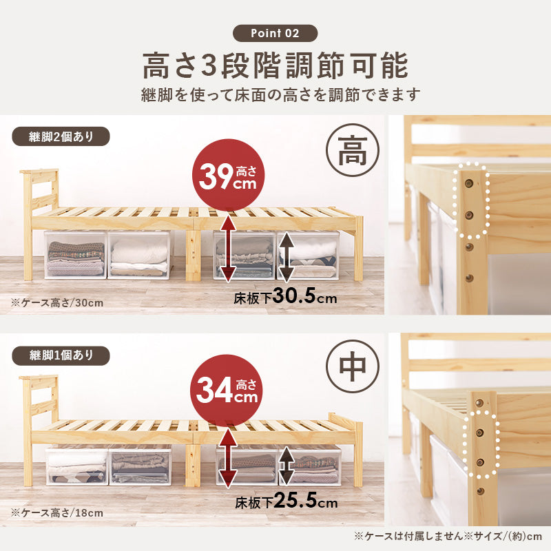 頑丈ヘッドレス すのこベッド シングル ロングサイズ 敷布団対応・高さ調節3段階 【PLANE】プレーン -