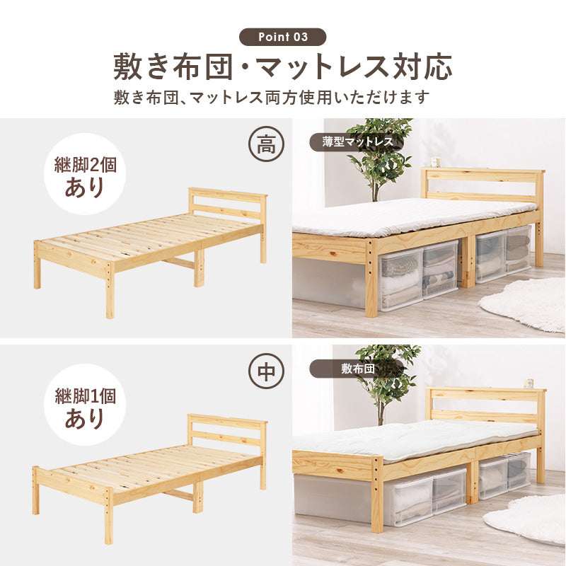 3段階調節 ヘッドレス すのこベッド シングル 敷布団対応 【ベッドフレームのみ】 -