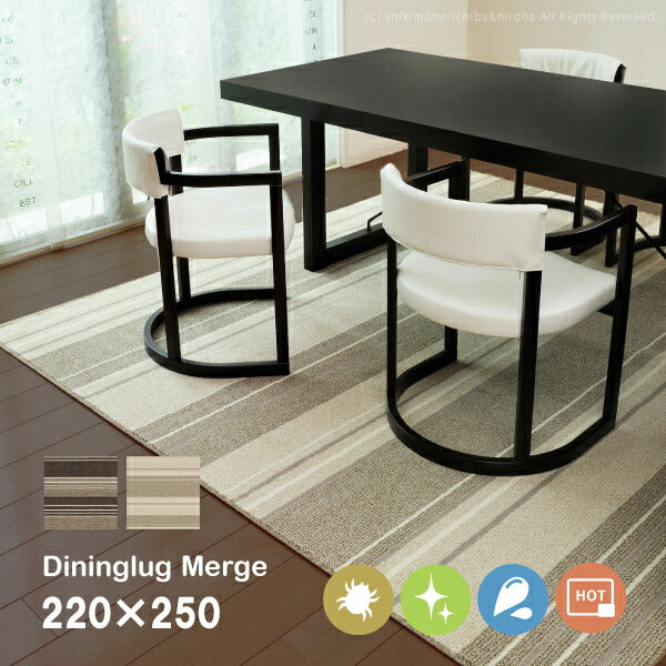 ダイニングでは、椅子を出し入れするゆとりを考慮してサイズを選ぶことが重要です。また汚れても洗えてお手入れ可能なカーペットが良いでしょう。撥水ですぐ拭き取れるクッションフロアなどもおすすめです。