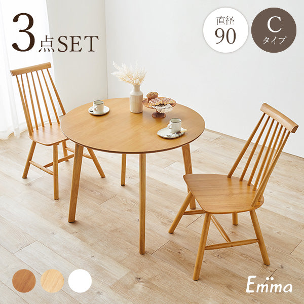 丸形ウィンザーダイニング3点セット 直径90cm Aタイプ【Emma】エマ