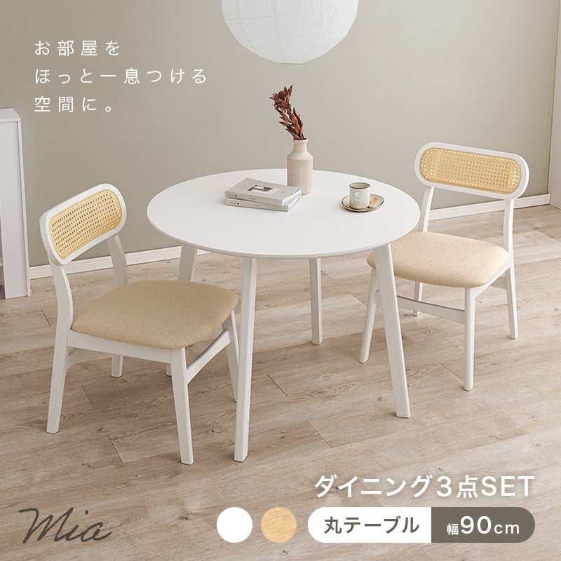 [直径90] 2人用ダイニングセット (丸テーブル+ラタン調チェア2脚) Mia