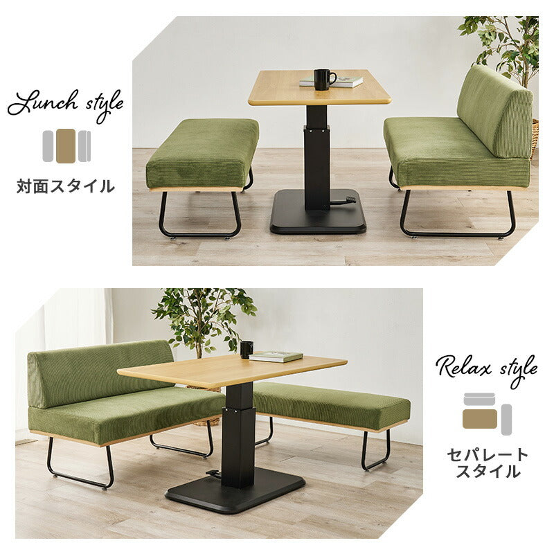 ダイニングソファは一般的に通常のソファよりも少し低めに設計されています。そのため、テーブルも通常より少し低めのものを選ぶと良いでしょう。