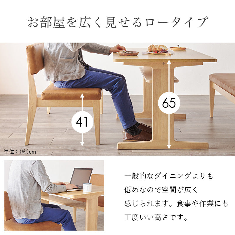 ソファなので椅子よりも座面の奥行きが深く、ふかふかな座り心地で食事を楽しむことが出来ます。また、ダイニングソファは通常のソファよりも低めに設計されているため、お部屋に開放感を与えます。
