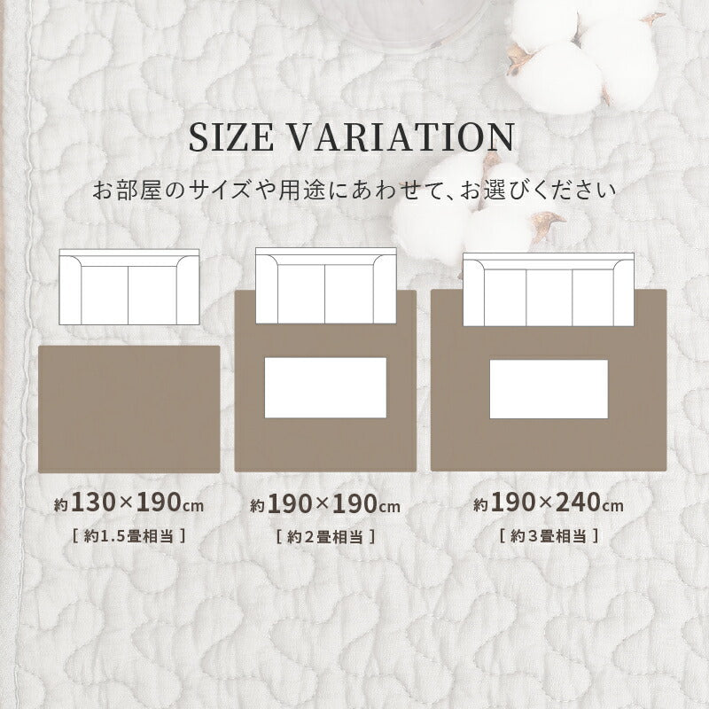 [3サイズ] ふわふわタッチの洗えるキルトラグ 滑り止め付き chocolate