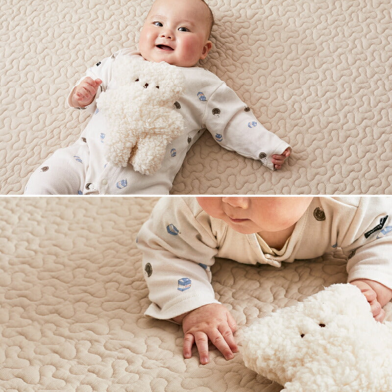 生後2ヶ月児の寝返り練習時に今までのラグは毛羽立ちも多かったため埃が着きやすく…暑くなってきたためプレイマット兼洗いやすいしラグを探していました。 まだずり這いが出来ず背中這いをしますが、ズレません!