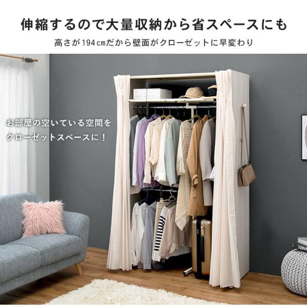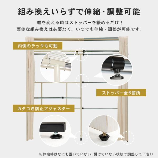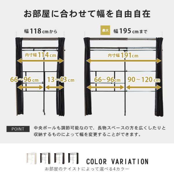 ■[幅118-195] 伸縮式クローゼット 棚なしタイプ Grande