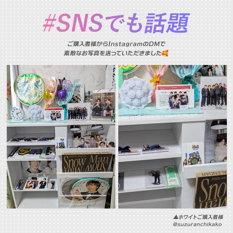 半分には推し活グッズを収納していますが、もう半分は見せる収納をしたいのでどうしようかな〜と考えてる時間も楽しいです。良い買い物できました!