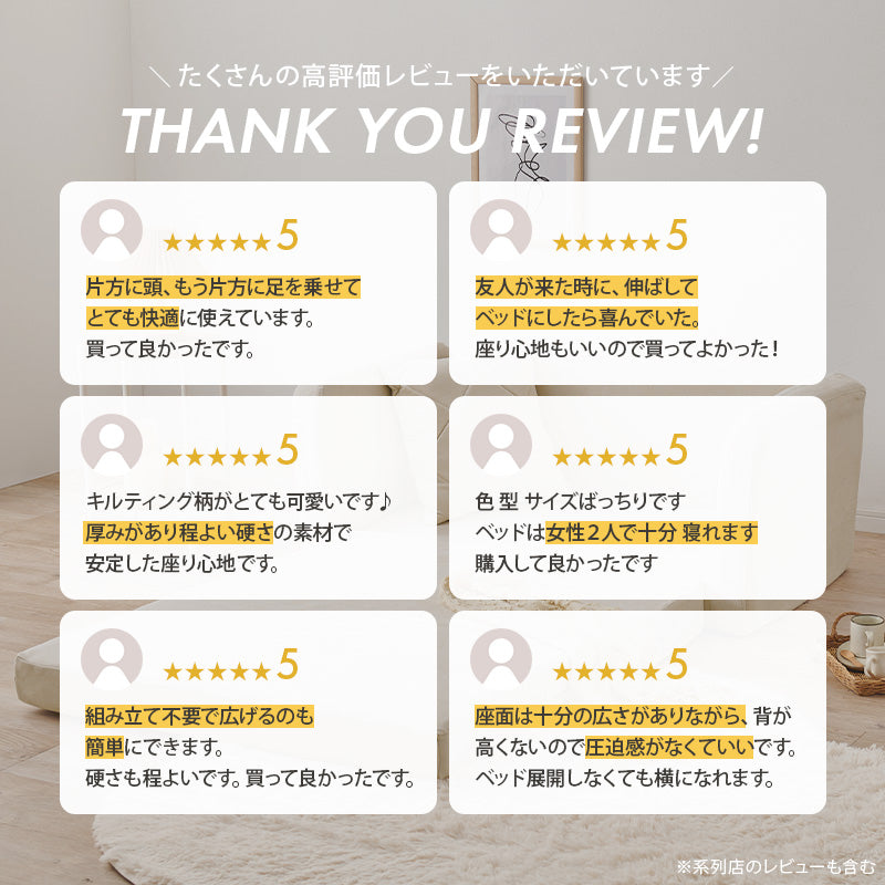 ご購入者様場所を取らないサイズなのに、ベッドとしても使えて便利!友人が泊まりに来た際ベットとして使用しました。普段はソファですので布団の場所を取らず一人暮らしにはとても便利だなと思いました。