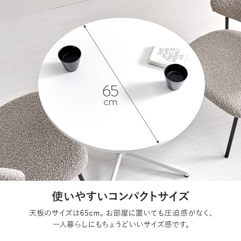 通常のテーブルに比べて小型なので、一人暮らしのお部屋でも気軽に置きやすいです。 特に円形テーブルの場合、通常サイズのものだと場所を取るため置きづらいですが、カフェテーブルならあまり場所を取らず設置することができます。小さい分、重さも軽いため、移動も簡単です。