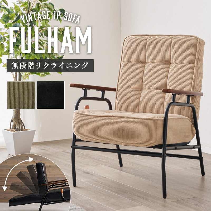【クオリアルおすすめ】[幅60] ヴィンテージ風ソファ 1人掛け ポケットコイル 無段階リクライニング レバー付き Fulham