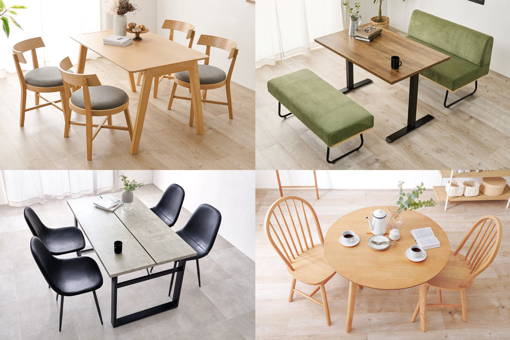 ✔ 座面の素材、脚の素材、カラーの特徴を抑えておくことで、おしゃれなダイニングコーディネートに!