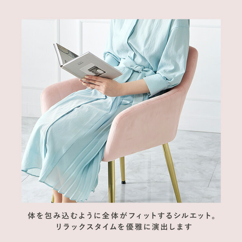 フェミニンなダイニングチェアを取り入れたいなら、べルベッド調のチェアを。テーブルにはホワイトや大理石調のものを合わせると、優雅な雰囲気に。