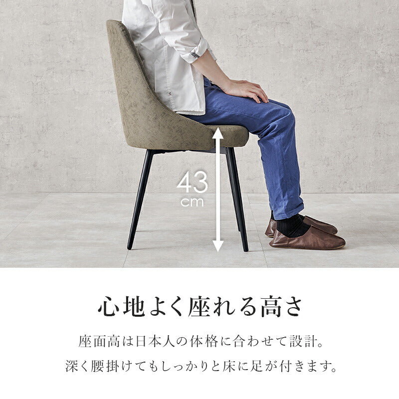 ダイニングチェアの座面高は40~45cm前後のものが多く、そのようなアイテムを選んでおけば、基本的には上記の条件を満たせるでしょう。