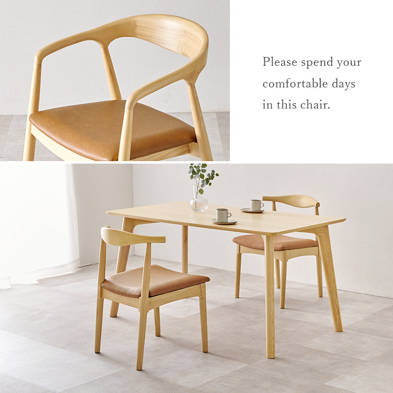【北欧ナチュラル風】に仕上げたいなら、ナチュラルカラーな天然木×ファブリックのチェアがマッチします。曲線が美しいデザインのチェア北欧っぽさが高まります。テーブルは同じく天然木を生かしたミニマルデザインなものを。