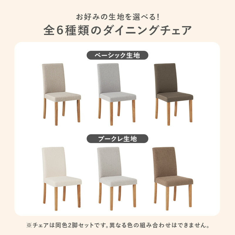 とにかくコスパ重視・シンプルなダイニングチェアには、木目調を生かしたシンプルなテーブルがマッチします。ナチュラルカラーのフレーム×グレーのファブリック座面のチェアならどんなお部屋にも合わせやすく、センスいらずでおしゃれな部屋に。