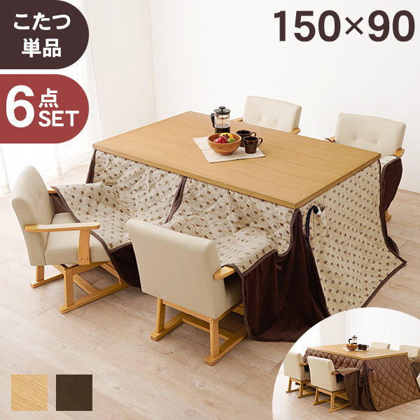 ダイニングこたつ用椅子を使っても、4人で向かい合ってゆったりと使えるサイズ感。また、短辺も90cmとゆとりがあるので最大6人で使うことが出来ます。