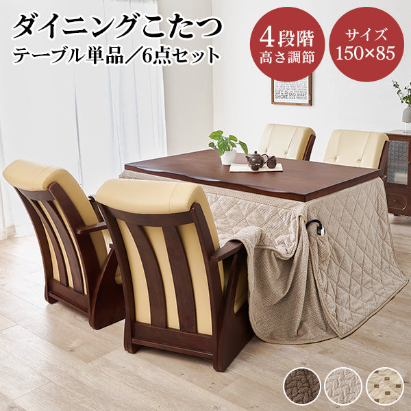 ダイニングこたつとは、ダイニングテーブルにヒーターを備えたこたつの一種。寒い季節でも食事のひとときを快適に過ごせるようにした家具です。