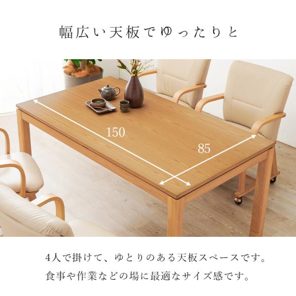 床で使うような通常のこたつとは異なり、食事や作業がしやすい高さで設計されているため、食卓として活用できるのが特徴です。ダイニングテーブルの便利さとこたつの暖かさを両立しており、冬場には特に人気があります。