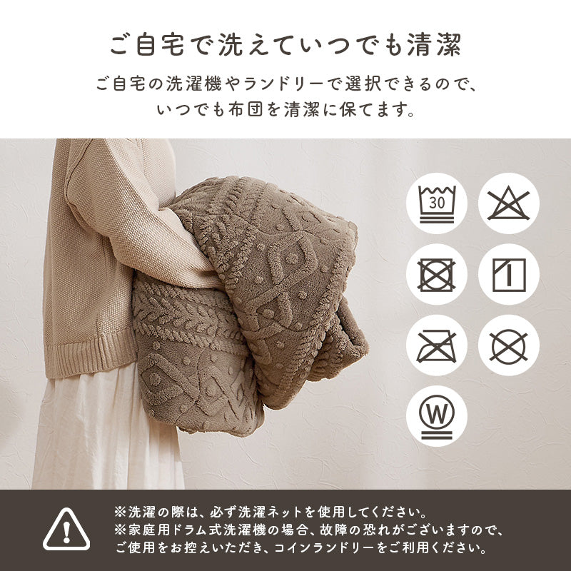 15~20kg以上洗濯機を使い、温度を守れば「洗濯・乾燥モード」などで洗濯・乾燥ができます。ただし、乾燥は長くても1時間ほどに。長時間乾燥させると、生地に負担がかかります。乾燥しきれなかった場合は自宅で干して乾かしましょう。