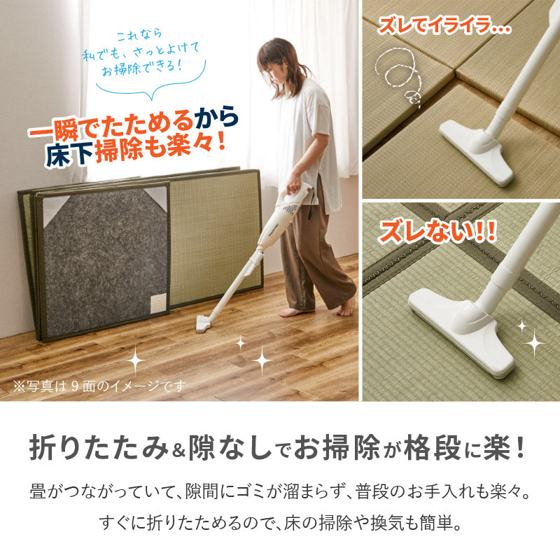 置き畳の上に敷布団を敷けば、洋室でも和室気分! フローリングの上に直に置くと、カビや湿気が気になりますが、置き畳があればい草の力でさらっと快適です。