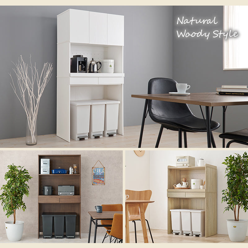 クオリアルではモダン、ナチュラルなど、お部屋の雰囲気を高める、デザイン性の高いゴミ箱付き収納棚を各種取り扱っています。ゴミ箱を収納する分、キッチン棚は高さが出て、存在感を放つことになるので、デザイン性にもこだわりたいですよね。