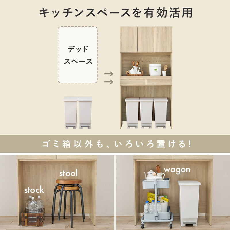 ゴミ箱収納付きキッチン収納棚は、ゴミ箱を一か所にまとめてすっきり見せられるだけでなく、その上の空間を有効活用出来る便利なアイテム。お部屋や用途にあった適切なキッチン棚を選び、快適なキッチン空間を作りましょう!