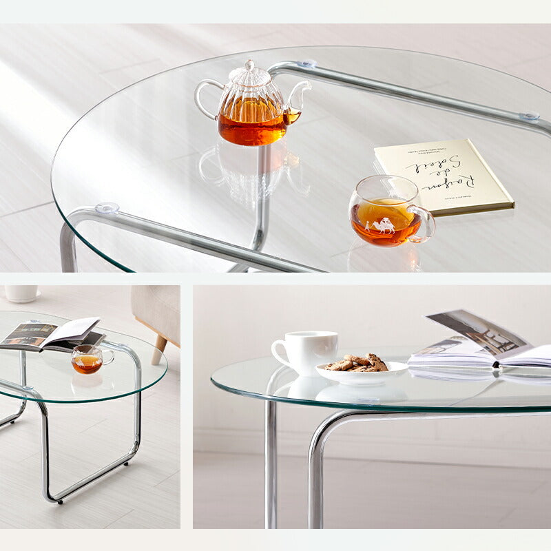 テーブルも円形のものを取り入れることで、空間が優しい印象に。お部屋をパッと明るくするホワイトテーブルや、透明で抜け感のあるガラステーブルがおすすめです。おうちカフェっぽくなると、SNSで人気なカフェテーブルを取り入れるのも◎