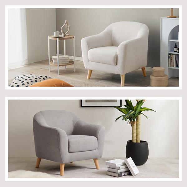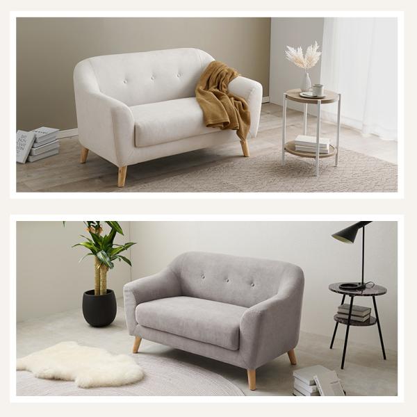 丸みのあるデザインのものを取り入れるとソファでも圧迫感を抑えられ、抜け感のある印象に。カラーは淡色がおすすめです。