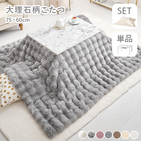 女性らしいエレガントなお部屋でもこたつをおしゃれに使いたいなら、ホワイト・大理石調のこたつテーブルがおすすめ。こたつっぽく見えないデザインで、お部屋の上品な雰囲気を損なわずこたつを使えます。