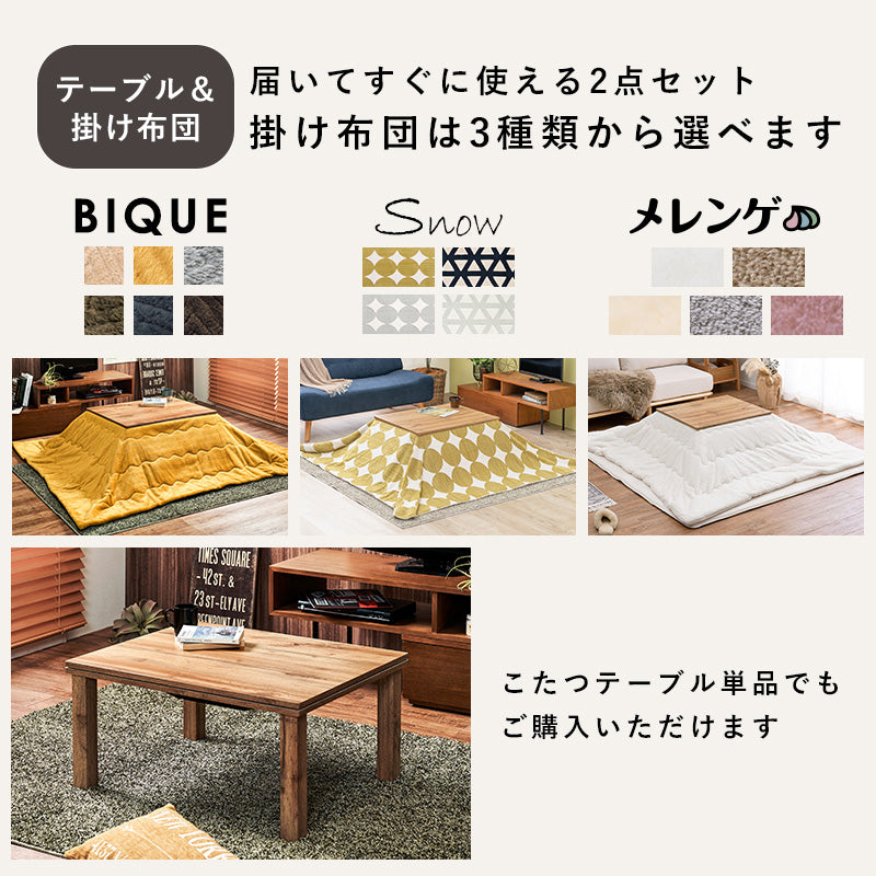 [幅75][単品/セット] 木目調長方形こたつ Cartes+メレンゲ/Bique/Snow