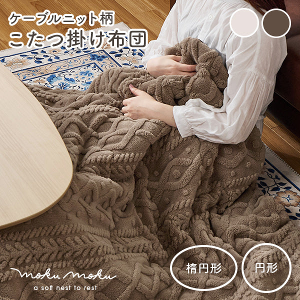 ■[4サイズ] 洗えるニット風こたつ布団 収納袋付き 円形 楕円形 moku moku