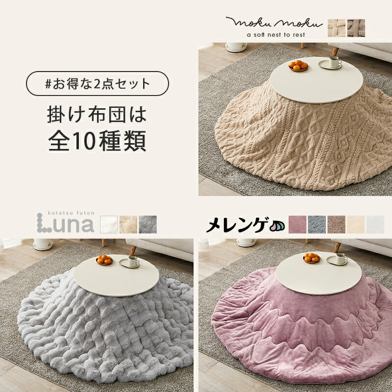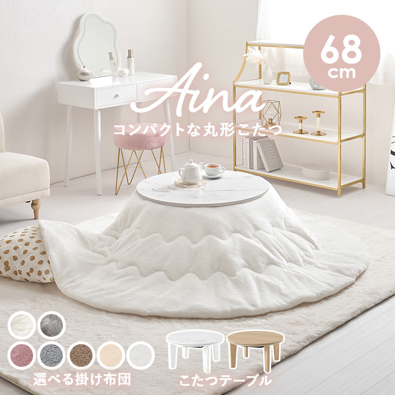 ■丸型こたつ 木目調 大理石調 (こたつテーブル単品or2点セット)Aina+Luna/メレンゲ