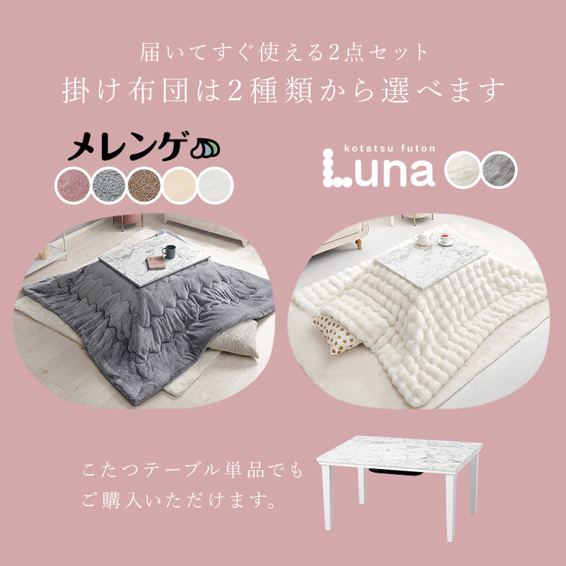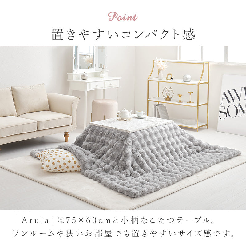 ■[幅75][単品/セット] 大理石柄こたつ 長方形 Arula+メレンゲ/Luna