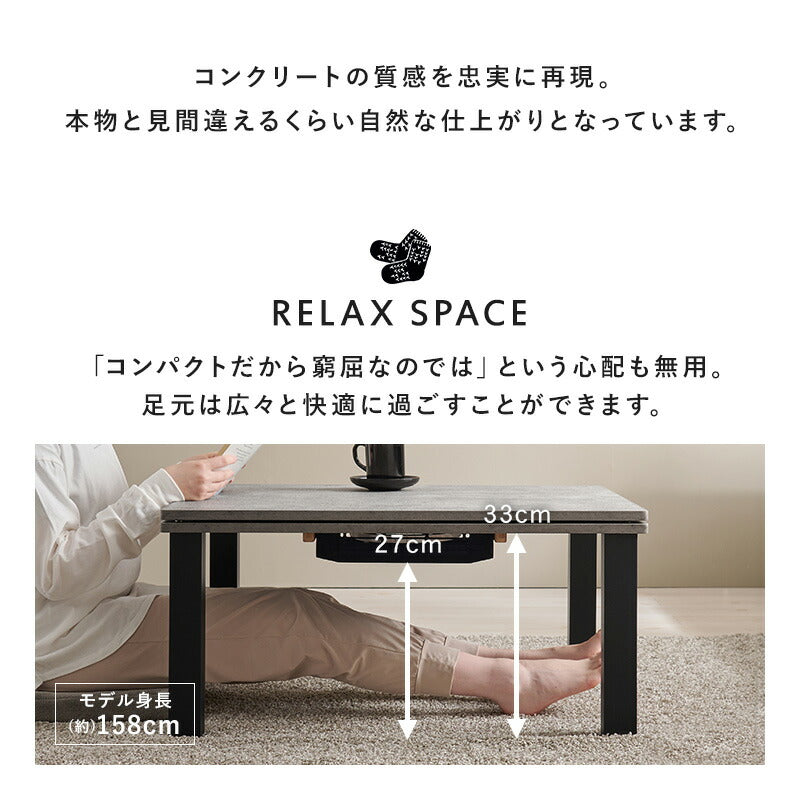 ■[幅75][単品/セット] コンクリート調長方形こたつ Cartes+メレンゲ/Bique/Snow