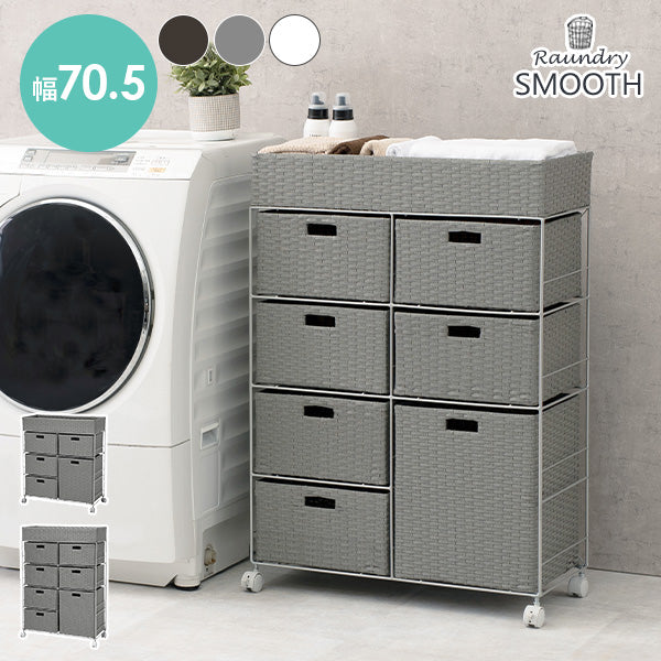 クオリアル人気ランドリー収納「SMOOTH(スムース)」シリーズは、ポリエチレン素材をラタン風に編み込んだアイテム。さらに、水に強い粉体塗装も施されているので、防水性は抜群。汚れてきた際も気軽に水洗いができて、清潔を保てます。