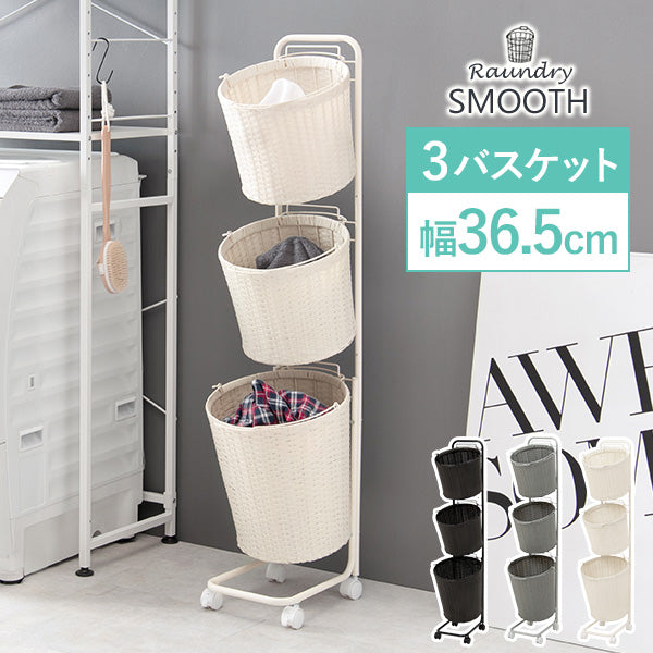 ✔ スリムで高さを生かした収納がおすすめ。二段以上のランドリーバスケットが便利