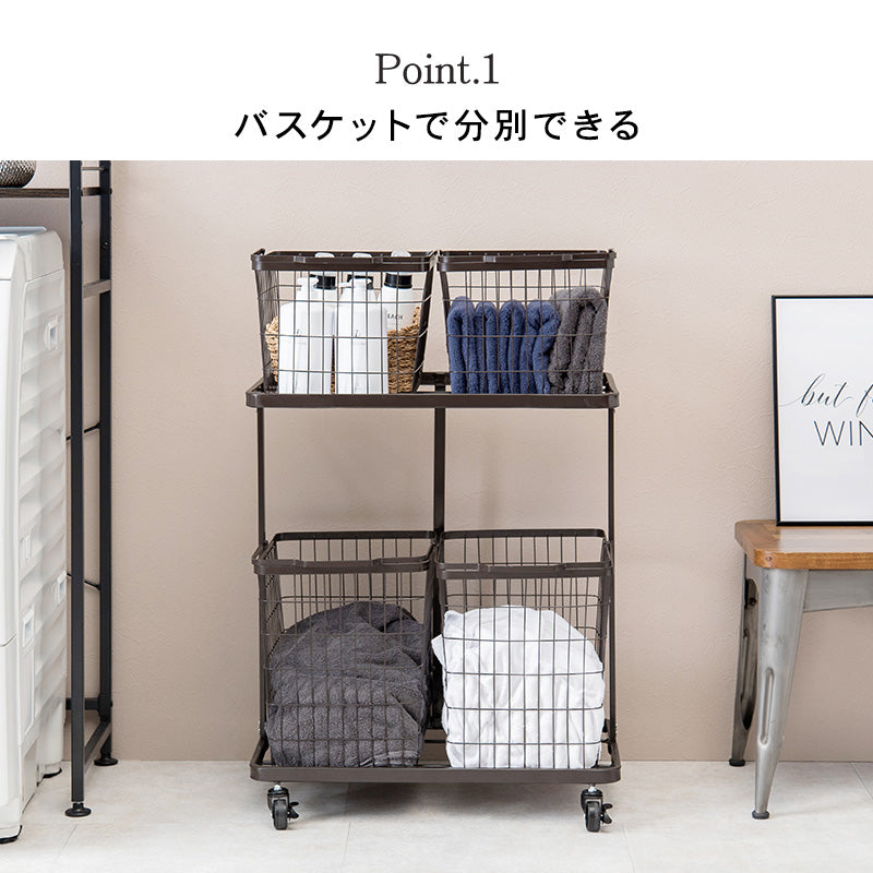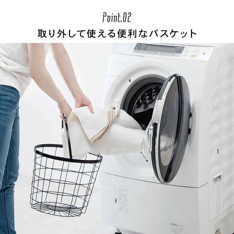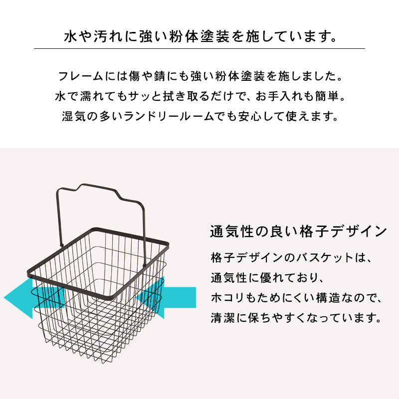 などがあります。カゴよりも機能的で、ランドリー空間をより有効に活かせる便利なアイテムです。