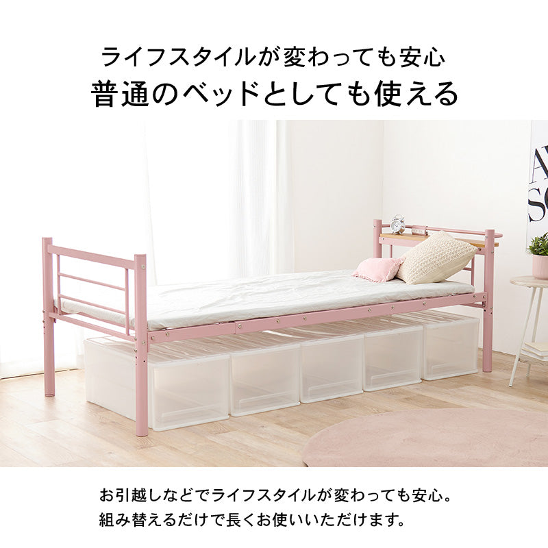 ロフトベッドのなかには、ロフトとしても通常のシングルベッドとしても使えるようなタイプもあります。お子様が成長し、シングルベッドで寝たいとなった際も買い替えが不要。一人暮らしを始める際のベッドとして引き続き使うことも。