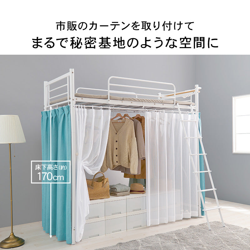 【クオリアルおすすめ】好きなカーテンが取り付けられるロフトベッド 高さ209cm[スーパーハイ]【AQUA】アクア