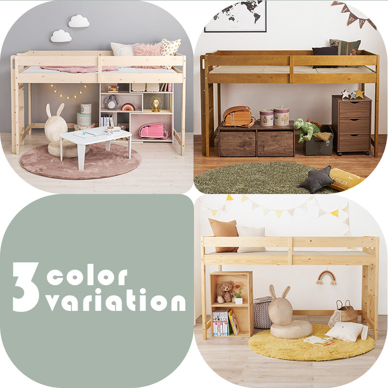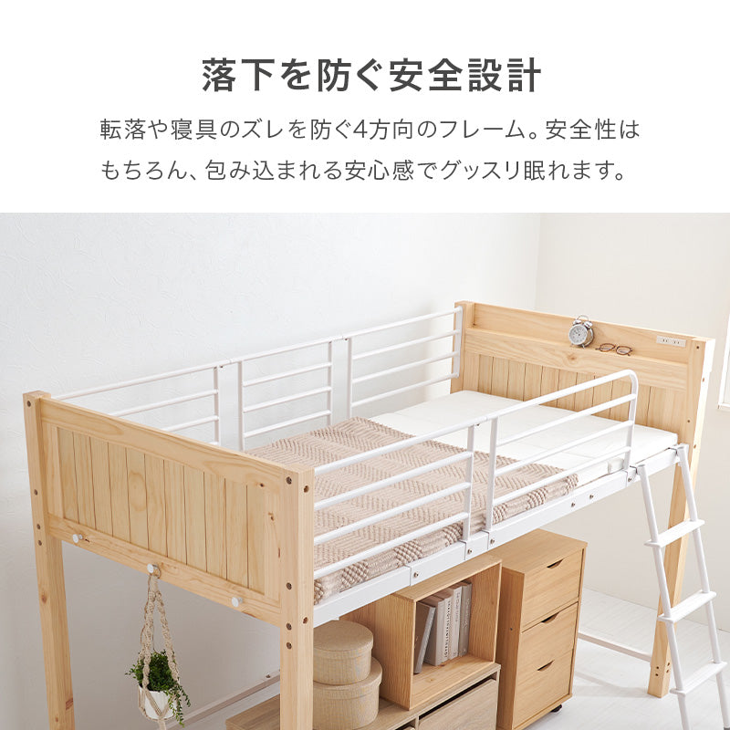 ロフトベッドは転倒対策が必須。基本的にはベッドガードが付属しているので転倒の心配はありませんが、人によっては、はしご用に空いた空間に不安を感じることも。