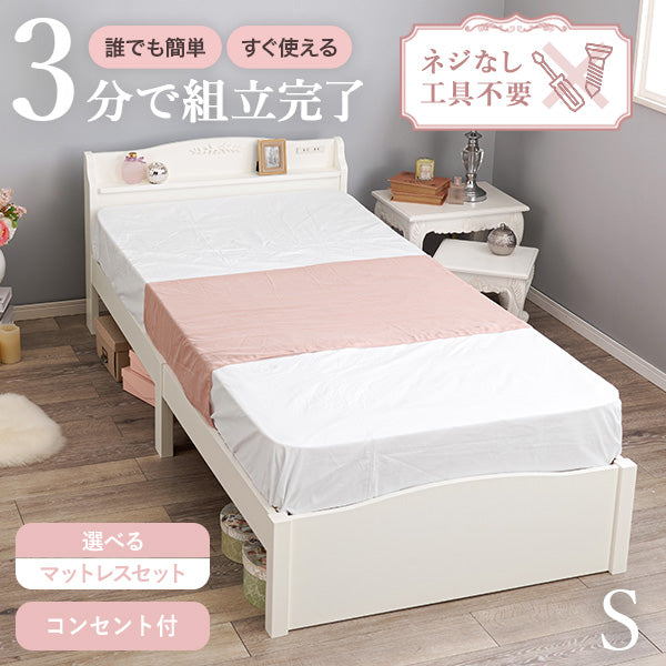 ホワイト基調・ベッドの細部にちりばめられたクラシカルなモチーフが可愛く、女の子らしいお部屋にもなじみやすいデザインです。組み立ても簡単なので、可愛さも機能性も組み立てやすさも全部叶えたい女性に特におすすめなアイテムです。