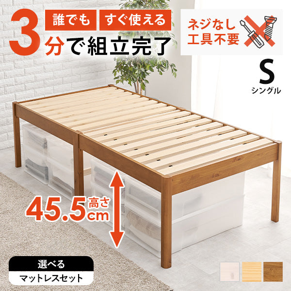 ③[シングル] 3分で組立できるすのこベッド 宮棚付きタイプ コンセント付き 頑丈 高さ調節3段階 NEJILESS PREMIUM