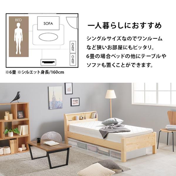 コンセントが付いていることで、ベッドでスマホを充電しながらくつろげることができます。棚付きで本や時計も置けてより快適な睡眠環境に。