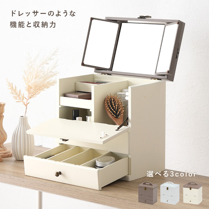 機能性や収納力はこれまで紹介した商品に劣りますが、最低限のメイクスペースを作りたいだけならとっても使いやすいドレッサー・コスメボックスのお取り扱いもあります。使用したい場所や収納したい量に応じて、これらも選択肢のひとつにしてみてくださいね。
