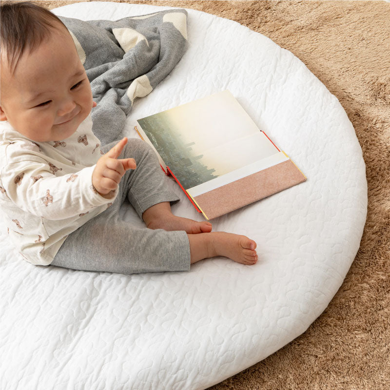 こちらのベビーマット。カラーはシンプルなアイボリーをチョイスしました」