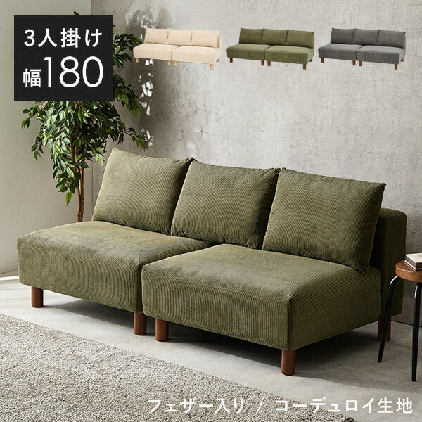 [幅180][生地サンプル無料] コーデュロイソファ 3人掛け 分割可能 クッション付き 脚取り外し可能 Nikos