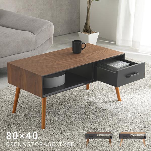 【使用テーブル】[幅90] コンクリート調 センターテーブル オープン収納付き CONCRETE
