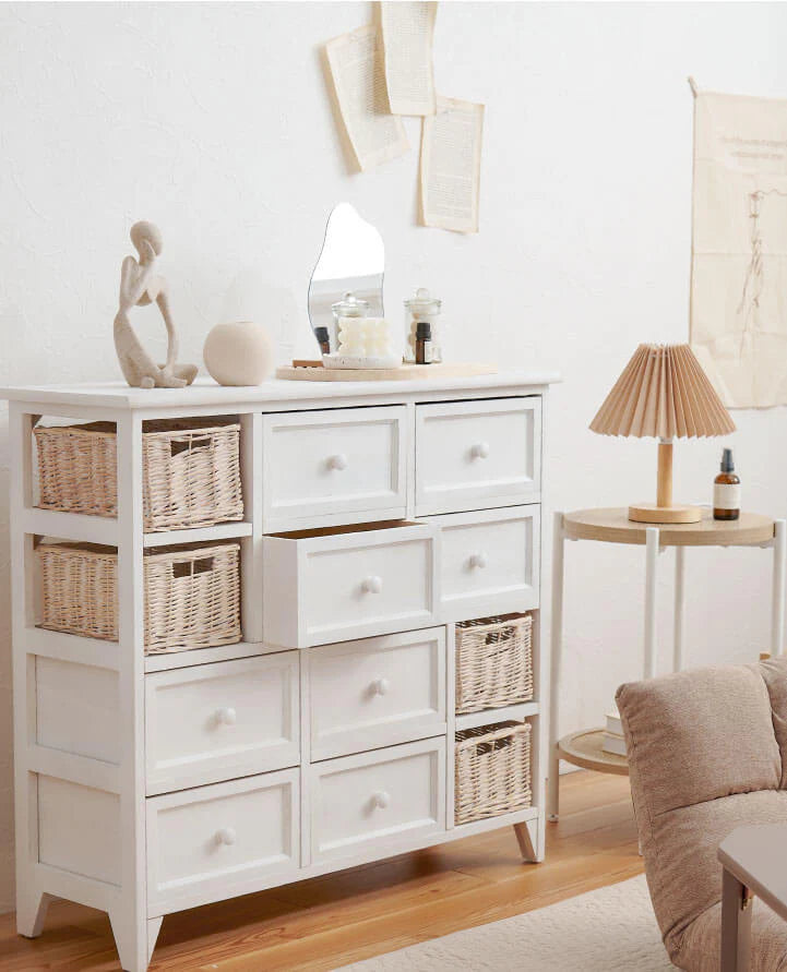 アンティーク調のホワイトチェストは